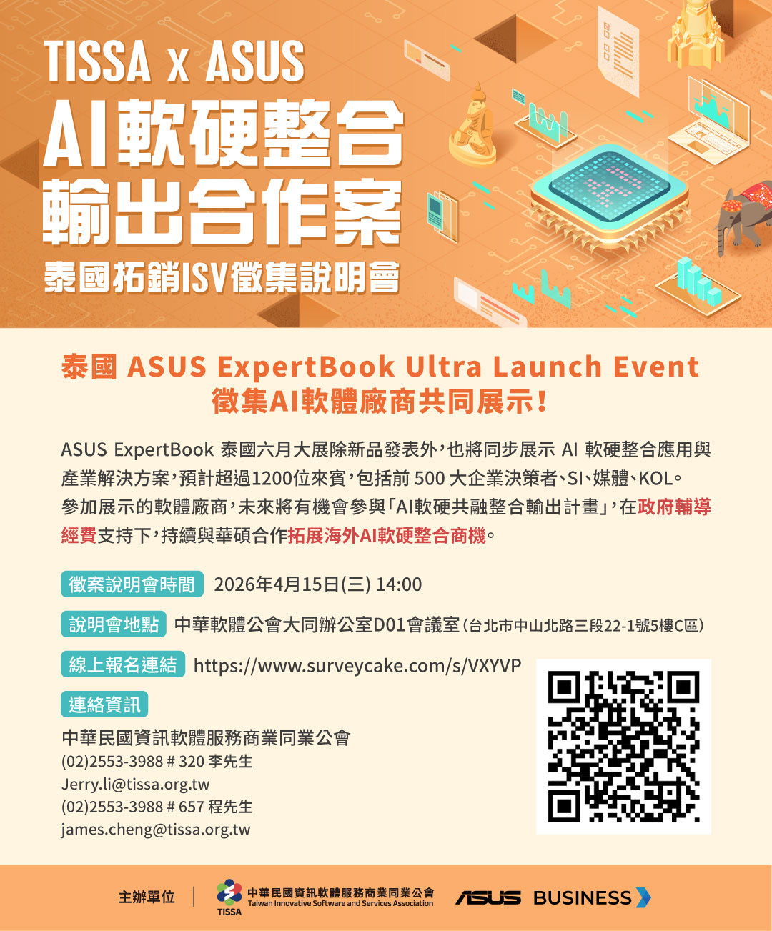 名額有限,歡迎有意開拓海外市場的軟體夥伴踴躍報名參與!